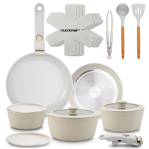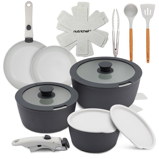 18-Piece Stylish Kitchen Cookware Set - Ceramic Nonstick Pots & Pan...