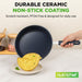 - EASY TO CLEAN: Featuring a durable and long-lasting non-stick ceramic coating, cleaning this pan will be less hassle as any food particles will easily slip from the pan's surface. Wash this pan with dishwashing liquid and simply rinse with water