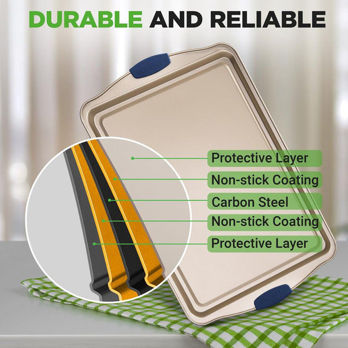 • Flexible & Nonstick Carbon Steel Bakeware Set With Blue Silicone Handles